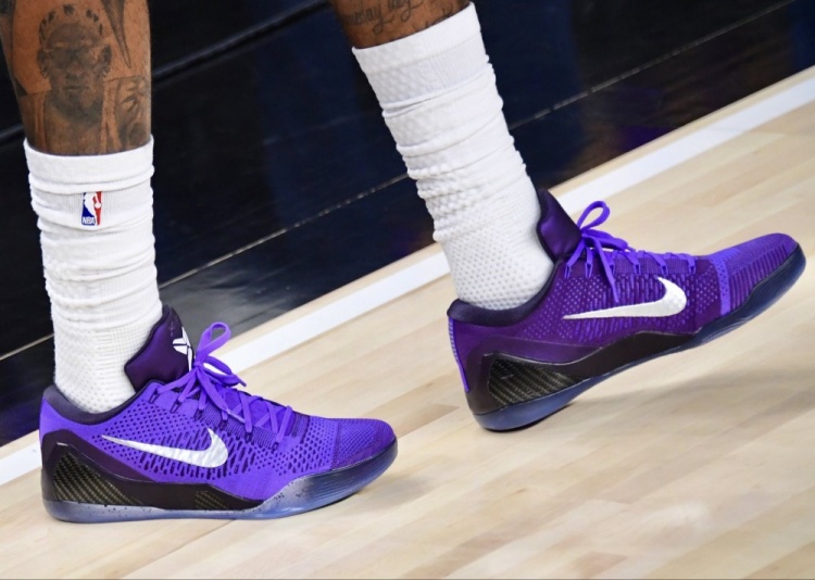 Nick DePaula写道:“球鞋自由球员杰伦-格林于太阳季前赛首秀中上脚Kobe 9 Low‘月球漫步’配色。”